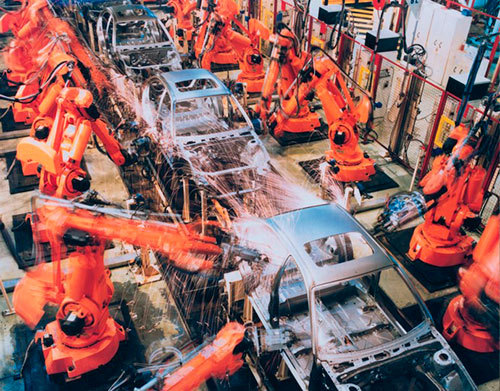 Nuevamente el uso de robots en este caso se centra en la posibilidad de coger elementos y de su colocación de coordenadas exactas con una repetitividad que ofrece una elevada productividad sin que un operario sufra fatiga por repetición ni esfuerzo de carga.