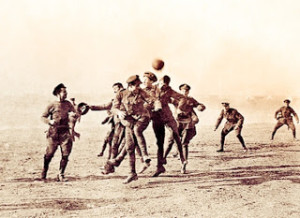 La mañana de Navidad, todos juntos, alemanes, ingleses, escoceses y franceses cavaron tumbas y enterraron a los muertos que habían quedado abandonados en la “tierra de nadie”, unos al lado de otros, sin importar el color del uniforme. Enemigos en vida y hermanos en la muerte. Un capellán escocés y un teólogo alemán de monaguillo, celebraron una misa de difuntos comunitaria. Y después alguien apareció con un balón de fútbol y por supuesto hubo partido.