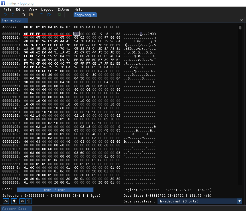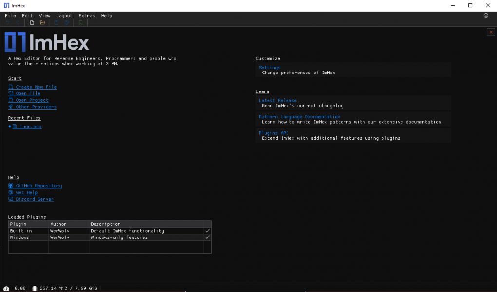 En el caso de Windows hay un montón de editores hexadecimales, la mayoría muy anticuados, pero personalmente voy a destacar uno bastante más moderno, ImHex, ya que tiene una interfaz muy atractiva y es bastante más fácil de usar que la mayoría de editores que hay en Linux o los que están ya estandarizados en Windows.
