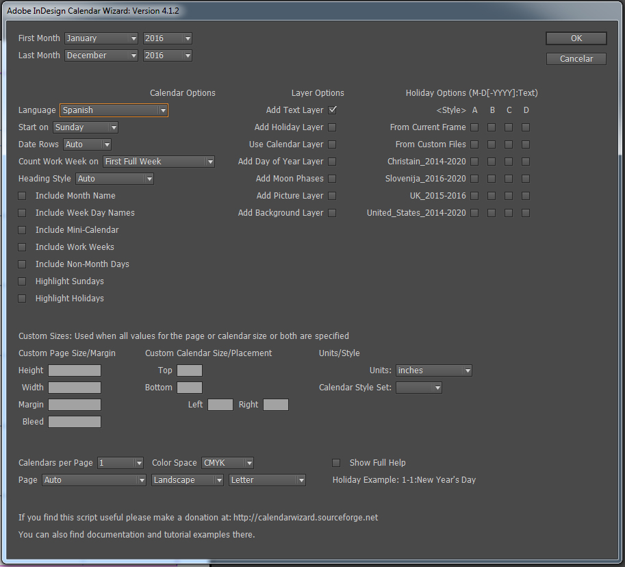 Sin duda Calendar Wizard es uno de los mejores scripts para Indesign. A mí me encantó su facilidad de uso, así que me decidí a escribir una descripción de las principales opciones y un paso a paso en el que se puede ver cómo en unos minutos es posible disponer de un calendario bastante apañado 😉 http://www.cevagraf.coop/posts/calendarios-2016-calendar-wizard/espero que lo encontréis útil 😉