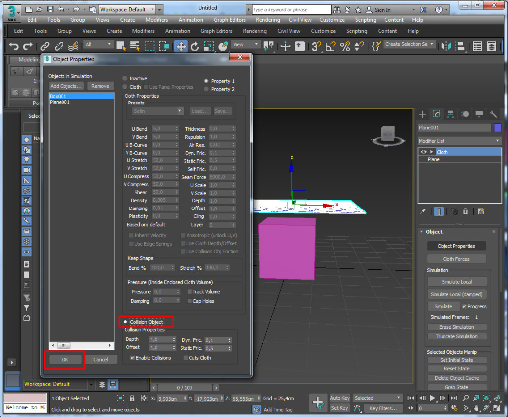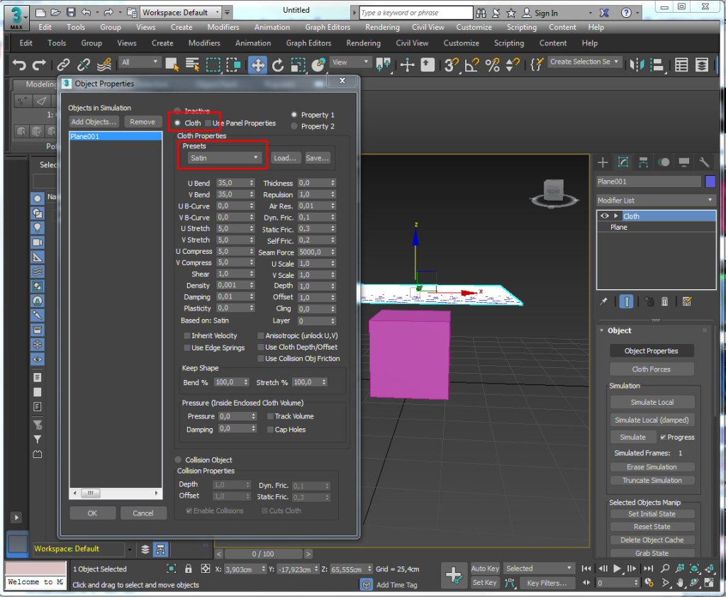 Buenas tardes, Tengo un problema con el modificador Cloth, en el momento que le doy a Simulate la tela empieza a deformarse y a elevarse , y no se adapta a la mesa…¿Que puedo hacer?Gracias