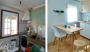 En la imagen podemos ver un ejemplo del estudio de arquitectura y diseño VandBA, se trata de una vivienda de 50m2, de dos plantas que estaban bastante deterioradas, envejecidas, con humedades e instalaciones mal ejecutadas y antiguas. La vivienda no cumplía con las condiciones mínimas de habitabilidad. Había demasiada compartimentación de las habitaciones, lo que generaba espacios pequeños y poco prácticos. A todo esto, hay que sumarle que los recursos económicos eran bastante limitados.