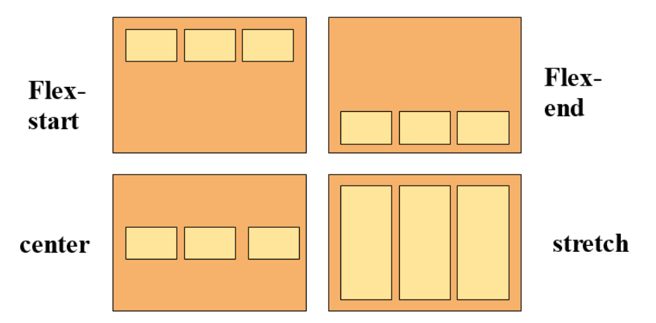 Si los elementos en un flexbox no ocupan el espacio vertical por completo, esta propiedad los alinea a lo largo del eje transversal.