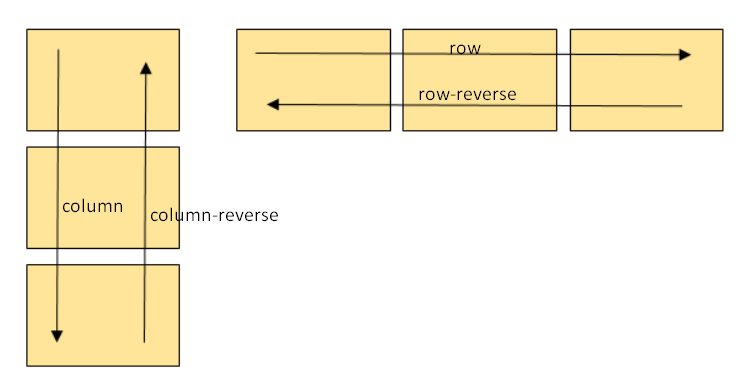 El main axis (de izquierda a derecha) se establece mediante la propiedad flex-direction. Este eje puede representar cuatro valores que son: row, row-reverse, column y column-reverse.
