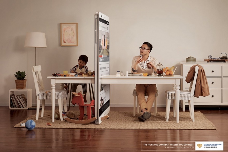 En contraposición a estos ejemplos podemos ver otros anuncios publicitarios en los que se ha realizado un excelente trabajo y no solo por el diseño realizado sino también por los valores que se trasmiten en ellos. El siguiente ejemplo pertenece a la compañía Ogilvy de Pekín, dónde se pone de manifiesto el lugar que ocupan las nuevas tecnologías en nuestras vidas bajo el lema «Cuanto menos nos comunicamos, menos hablamos».