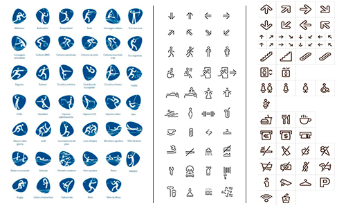 Como podemos observar en la imagen, la señalética, no es la creación de un solo símbolo, sino de varios, formando una familia, que refuerza la información del espacio o el entorno.