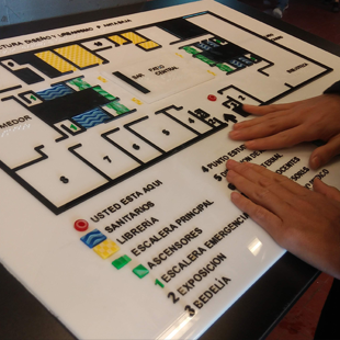 Otro ejemplo son los planos hápticos que, gracias a las texturas y el sistema braille, las personas con discapacidad visual puedan orientarse.