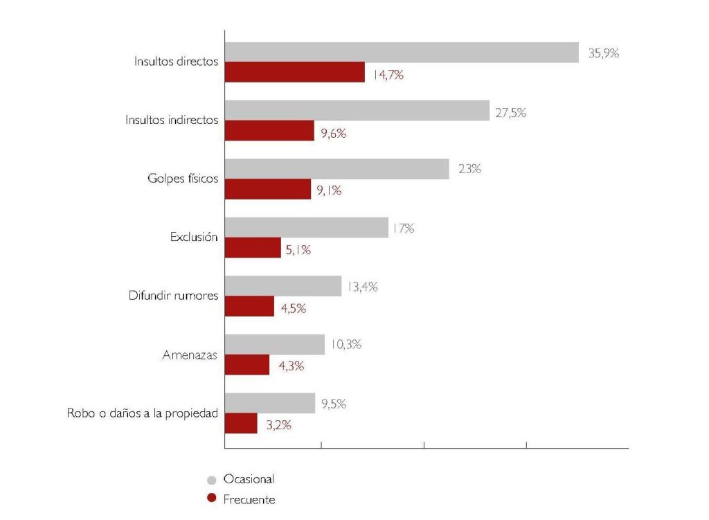 Según un informe presentado por Save The Children, “Ya a eso no jugo”, se analizan los datos de una encuesta realizada a 21.500 menores de entre 12 y 16 años sobre la prevalencia y frecuencia del acoso y ciberacoso en España. Dicho informe no sólo recoge datos desde el punto de vista de la víctima, sino también del agresor, siendo el insulto la conducta instigadora más repetida entre los encuestados.