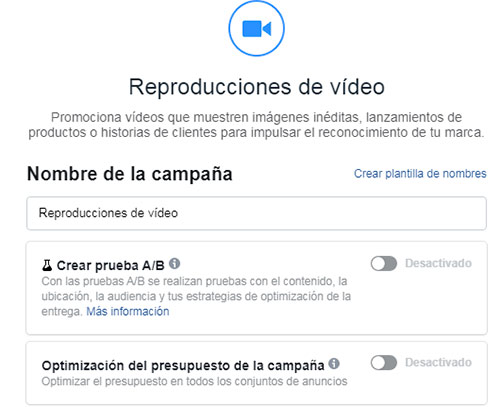 Una vez que se ha elegido el objetivo el siguiente paso es poner un nombre a la campaña. En nuestro ejemplo anterior podría ser: ‘’promociones Black Friday‘’.