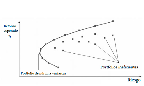 Se busca determinar el conjunto de carteras eficientes que proporcionen mínimo riesgo para un valor dado de rendimiento. Los límites de la frontera eficiente son la cartera con el máximo nivel de rentabilidad (límite superior), y la mínima varianza (límite inferior), cualquier combinación con la misma rentabilidad pero por fuera de esta frontera estará asociada a una varianza más alta y desde el punto de vista del inversor, su elección será irracional. Las carteras más altamente diversificadas o carteras “óptimas» pueden ser definidas como carteras que: