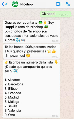Para suscribirte solo tienes que agregar el teléfono de contacto y mandar un mensaje donde ponga ‘‘Ok Hoppi». A partir de ahí, tendrás que contestar una serie de preguntar para que el Bot pueda encontrar una oferta que se ajuste a ti.