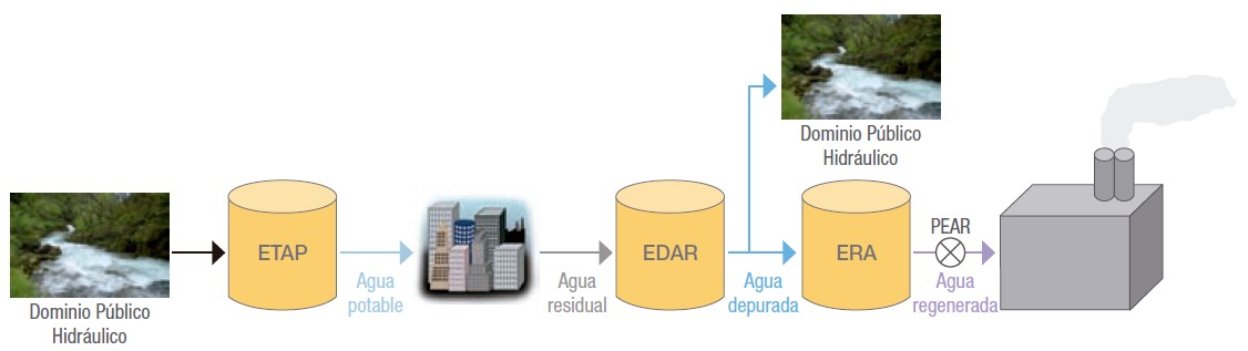 Se entiende como aguas regeneradas aquellas aguas residuales depuradas que han sido sometidas a un proceso de tratamiento adicional o complementario que permite adecuar su calidad al uso al que se destinan. El objetivo de este tratamiento es obtener un agua que va ha ser utilizada nuevamente.
