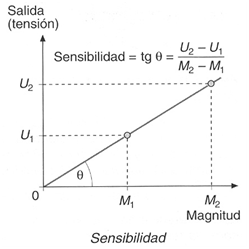 Sensibilidad: este concepto se refiere a la pendiente de la curva que relaciona la salida eléctrica con la magnitud física a medir.