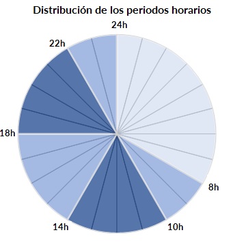 8 – 10h, 14 – 18h y 22 – 24h |