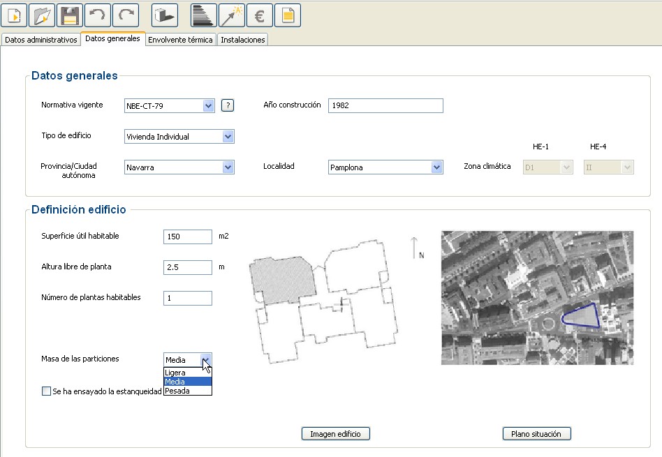 En el programa o herramienta simplificada para certificación energética CE3x, uno de los puntos que nos pregunta en la pestaña de datos generales es la “Masa de las particiones” dándonos a elegir entre: ligera, media y pesada. Este dato principalmente lo pide para posteriormente poder estimar la inercia térmica del edificio.