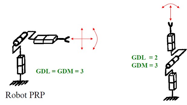 El número de coordenadas independientes necesarias para expresar la posición de todas sus partes se conoce como el número de grados de libertad del sistema. El número de grados de libertad con que cuenta un robot determina la accesibilidad de este y su capacidad para orientar su herramienta terminal. Algunos autores prefieren usar el término grado de movilidad para describir esas articulaciones que dan el GDL adicional al sistema sin cambiar el GDL del elemento final. El término grado de movilidad puede ser más descriptivo que el de grado de libertad añadido, especialmente si el elemento final no dispone de los seis GDL.