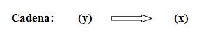 El hecho (x) tiene un solo antecedente (y) y su relación es tal que el hecho (x) no se produciría si el hecho (y) no se hubiera producido previamente. (x) e (y) constituyen una cadena y esta relación se representa gráficamente así: