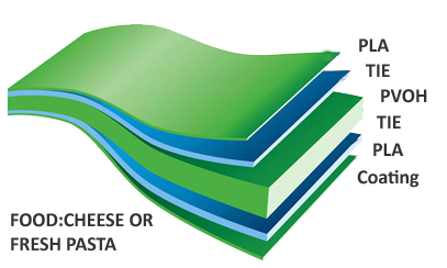 • Alcohol de polivinilo (PVOH). Tiene una buena barrera a los gases y además es soluble en agua, lo que hace posible que el envase sea reciclable y biodegradable.