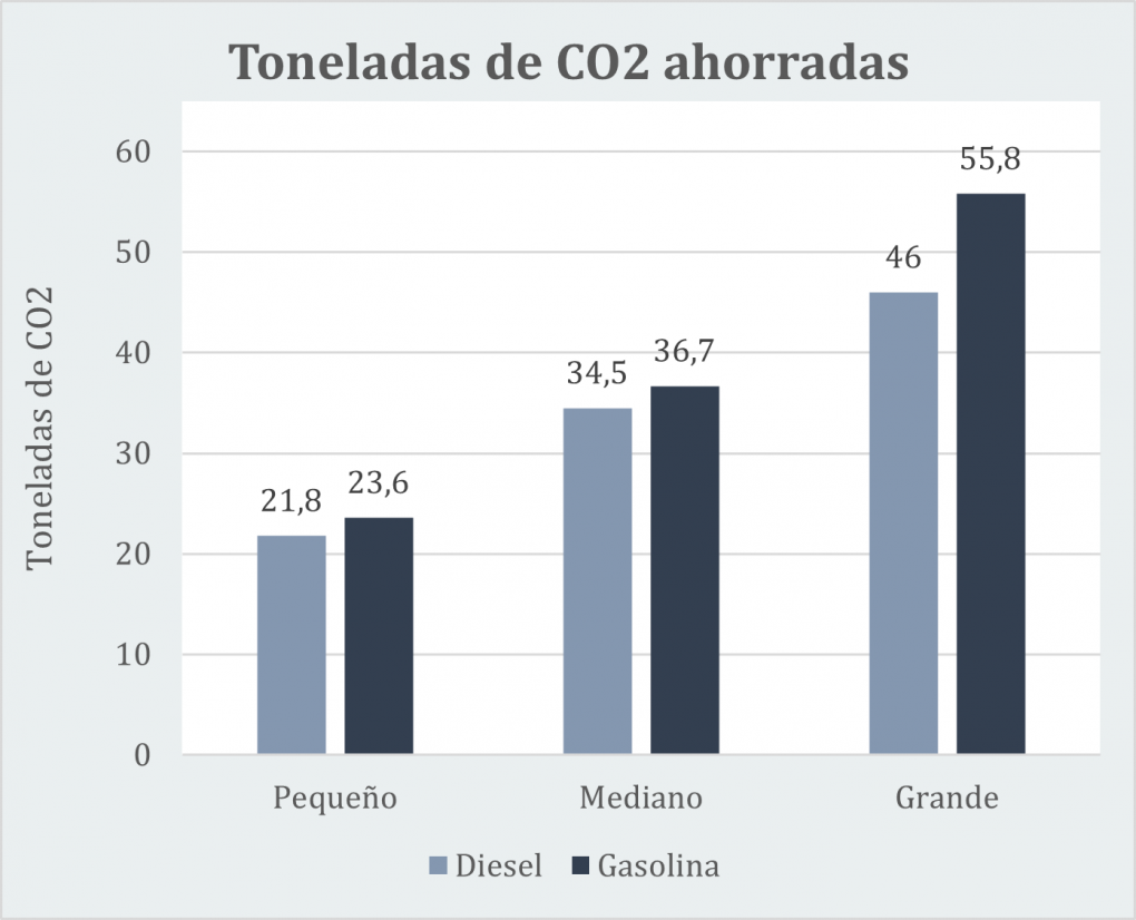 Ahorro de Toneladas de CO2 del coche eléctrico respecto a gasolina y diésel