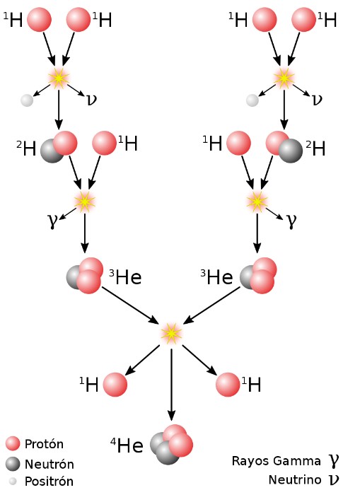 Los átomos nunca descansan: cuanto más calientes están, más rápido se mueven. En el núcleo del Sol, donde las temperaturas alcanzan los 15.000.000 °C, los átomos de hidrógeno están en constante agitación. Al chocar a velocidades muy elevadas, la repulsión electrostática natural que existe entre las cargas positivas de sus núcleos se supera y los átomos se fusionan. La fusión de los átomos ligeros de hidrógeno produce un elemento más pesado, el helio.