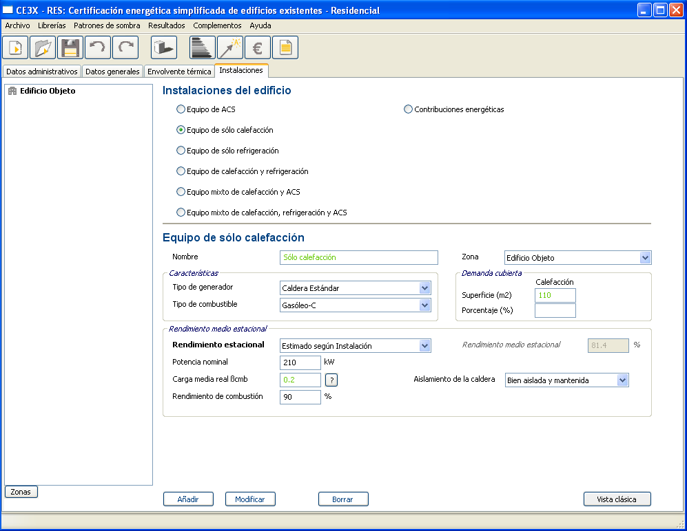 Hola Manuel, Estoy realizando la certificación de un edificio plurifamiliar de 6 pisos y 7 viviendas con sup total de 2730,80 m2 que consta de:-3 calderas comunitarias para abastecimiento de ACS y calefacción de 260000 kCal /h cada una-Bombas de calor para calefacción y aire acondicionado para cada una de las viviendas.He seguido los consejos que has dado en cuanto a la fracción de potencia aportada a cada generador y la potencia a la que entra en servicio las calderas comunitarias, y dividido la superficie total entre 3 para asignársela a las tres calderas pero no consigo generar la calificación porque me aparece una notificación: LA INSTALACION DE CALEFACCIÓN CUBRE UNA DEMANDA SUPERIOR AL 100%Se te ocurre algo para solucionar este problema?