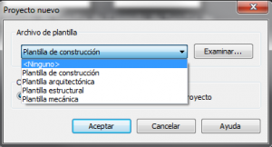 Revit permite elegir la plantilla que deseemos o bien partir de una plantilla personalizada de la que ya dispongamos a través de la tecla “Examinar…”: