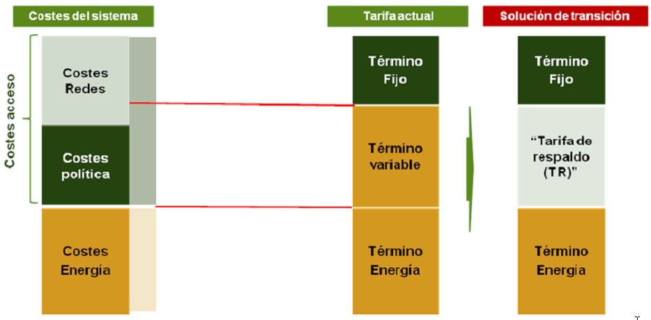 Dada la actual estructura de tarifas, cuando un consumidor autoconsume, se produce una transferencia de costes fijos al resto de consumidores que sí consumen del sistema. De esta manera nace la “tarifa de respaldo” que sirve para responder a la parte variable que el consumidor deja de pagar mientras autoconsume y que ayuda a recuperar estos costes de forma que no recaigan en el resto de consumidores.