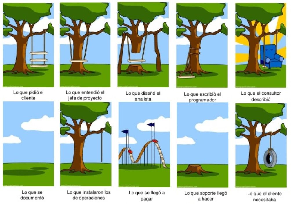 En las siguientes viñetas muy conocidas en programación se muestra la importancia de la comunicación en las etapas iniciales.