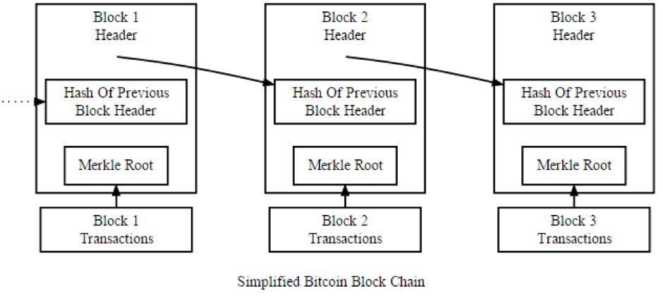 Todos los bloques que componen la cadena, tienen un hash (contraseña alfanumérica creada a partir de una función hash o función resumen) del bloque anterior, de manera que los bloques se ordenan cronológicamente gracias a esta hash que los referencia desde el bloque que los creó.