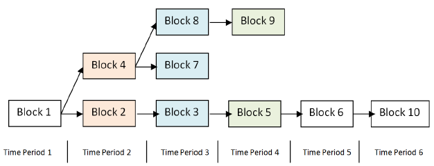 Cada vez que un nuevo bloque se confirma desde los nodos mineros, se añade a la cadena. A continuación se comunica a todos los nodos, y éstos la añaden a la copia que cada uno almacena.