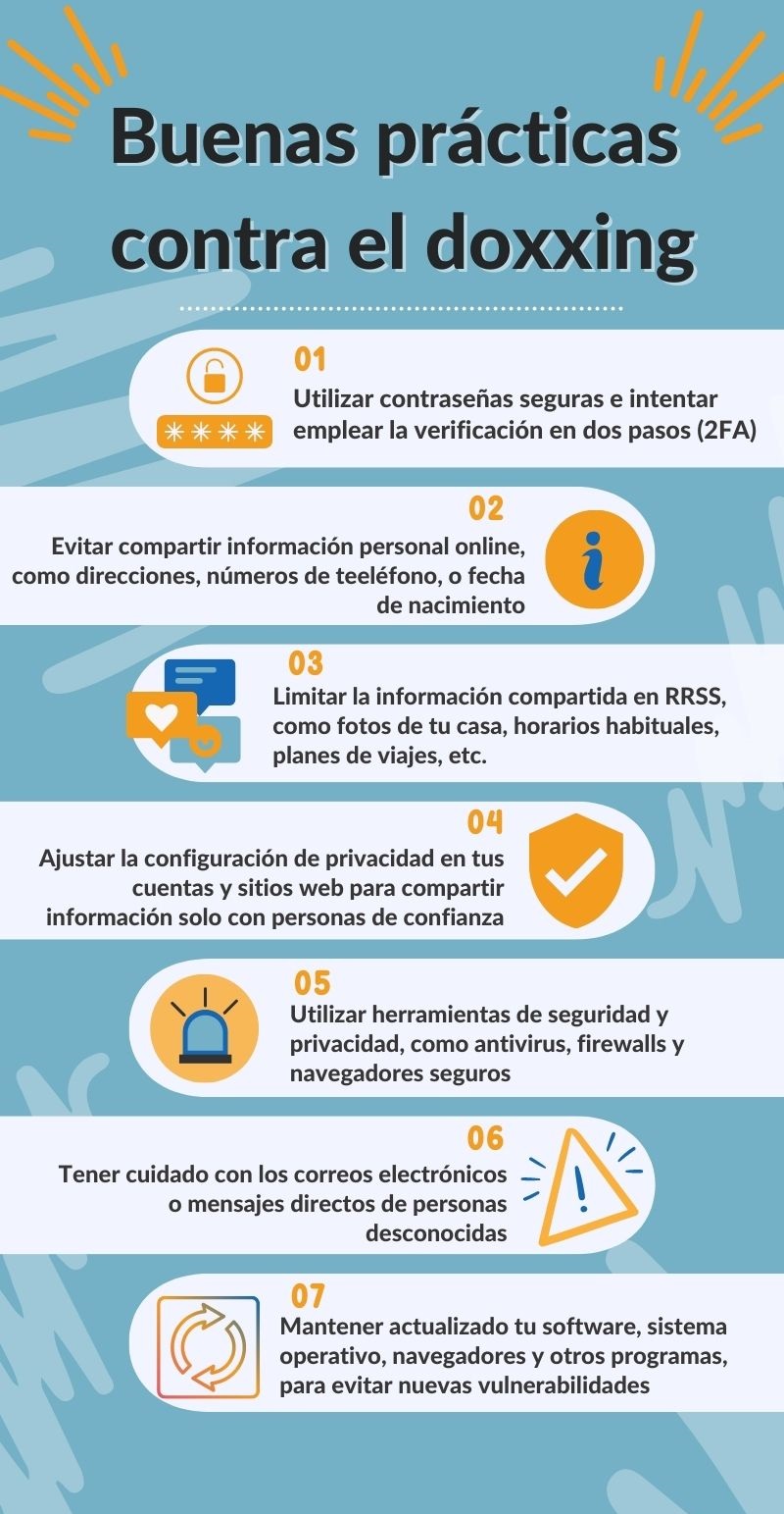 Te presento en la siguiente infografía algunas buenas prácticas para mejorar tu seguridad y evitar el doxxing: