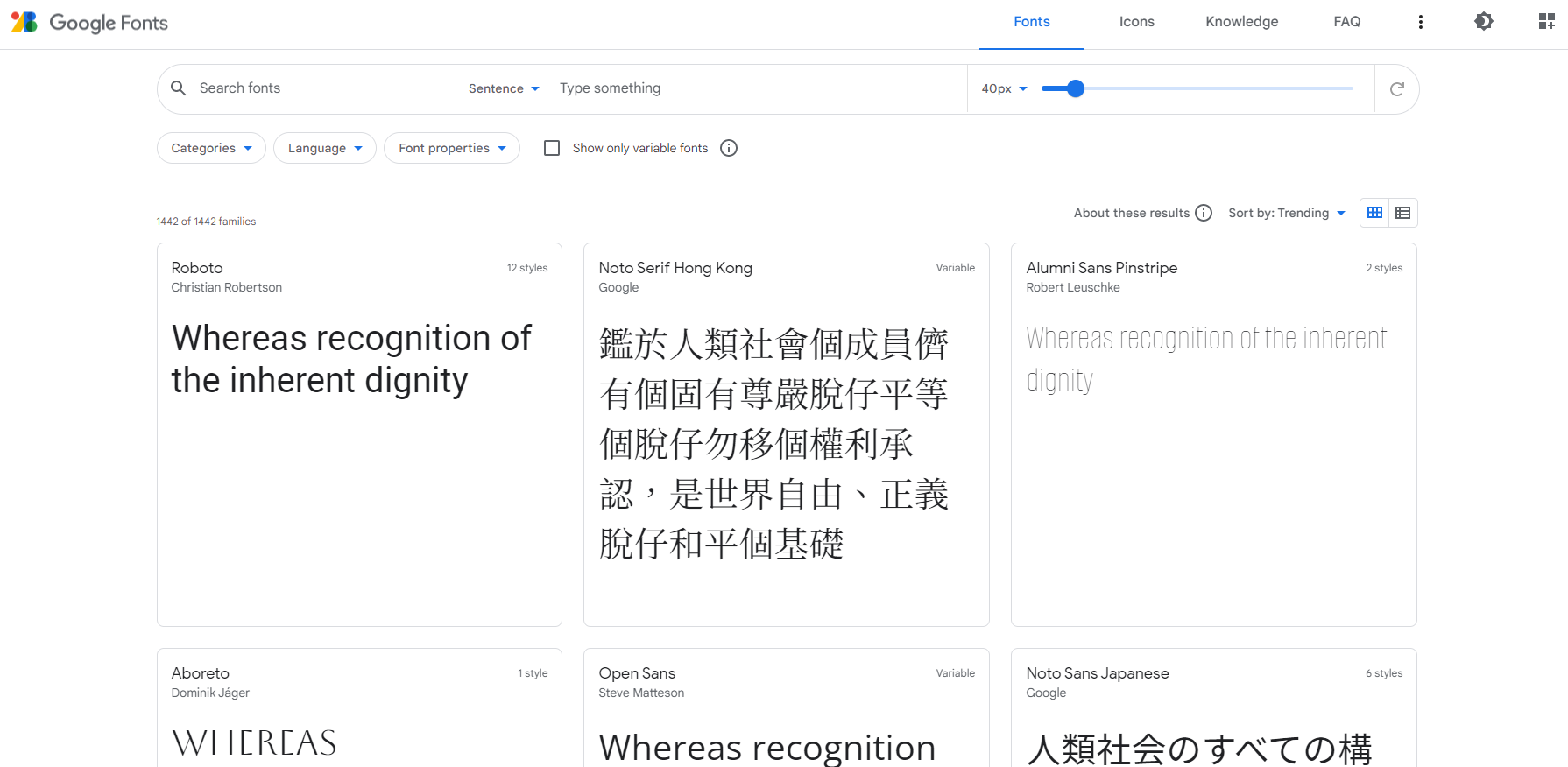 Google Fonts es un repositorio inmenso con familias de fuentes tipográficas libres de derechos y totalmente gratuitas.