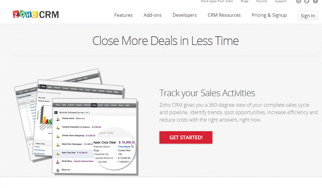 Es el principal rival de SugarCRM en la actualidad. Ofrece funcionalidades interesantes como informes, portal de clientes, plugins para Outlook.