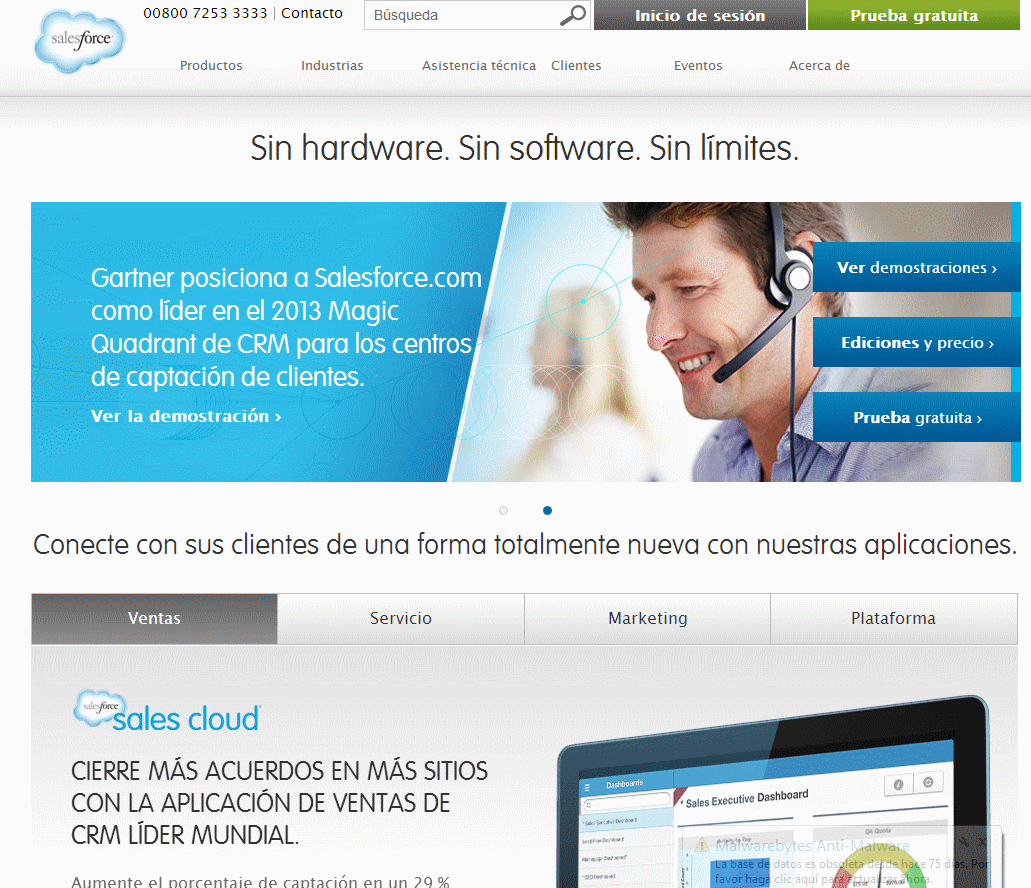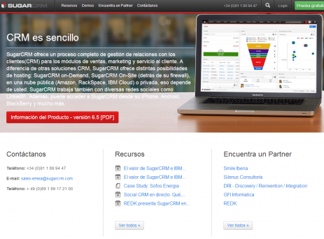 Probablemente sea el CRM más usado. Funciones pensadas para trabajar en empresas pequeñas y grandes. Funciones para gestión de ventas, contactos, marketing, presupuestos.