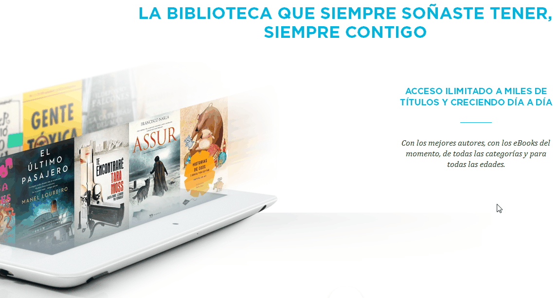 Básicamente es un sistema que ofrece un «amplio catálogo de ebooks de las principales editoriales del país bajo el modelo de suscripción».