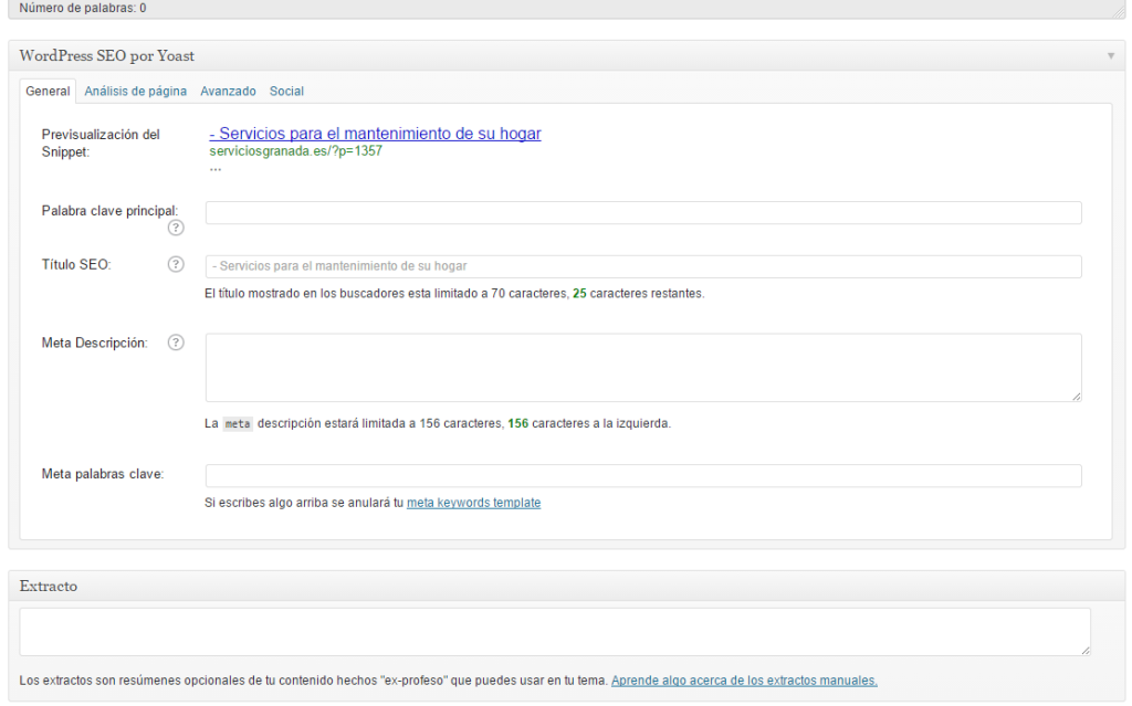 El segundo cambio que vamos apreciar es que dentro del panel de edición de nuestros post tendremos nuevos datos que cumplimentar que son los que se usarán en el posicionamiento: