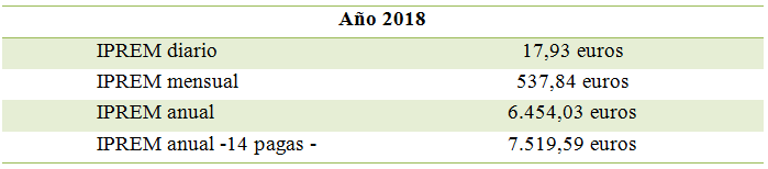 Los importes  para el año 2018 según los Presupuestos Generales del Estado, son los siguientes: