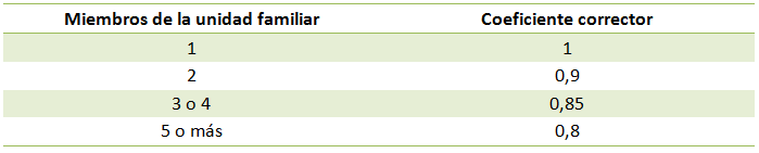 1. El número de miembros de la unidad familiar que perciba ingresos. En este supuesto, “se aplicará un coeficiente corrector del 0,9 si más de un miembro percibe ingresos y además la aportación del miembro que percibe mayores ingresos no supera el 70% del total de ingresos de la unidad familiar”.