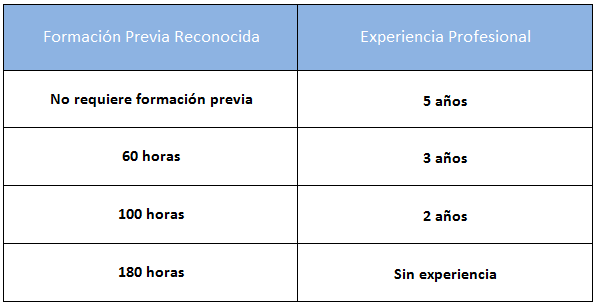 De este modo, las horas de formación quedarán distribuidas de la siguiente manera, dependiendo de la formación previa reconocida: