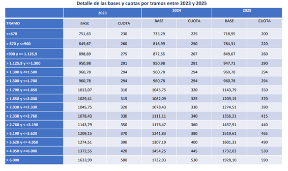 Así quedan los tramos de cotización para autónomos, según los datos ofrecidos por el Ministerio de Inclusión, Seguridad Social y Migraciones sobre el acuerdo para la reforma del RETA (Régimen Especial de Trabajadores Autónomos):