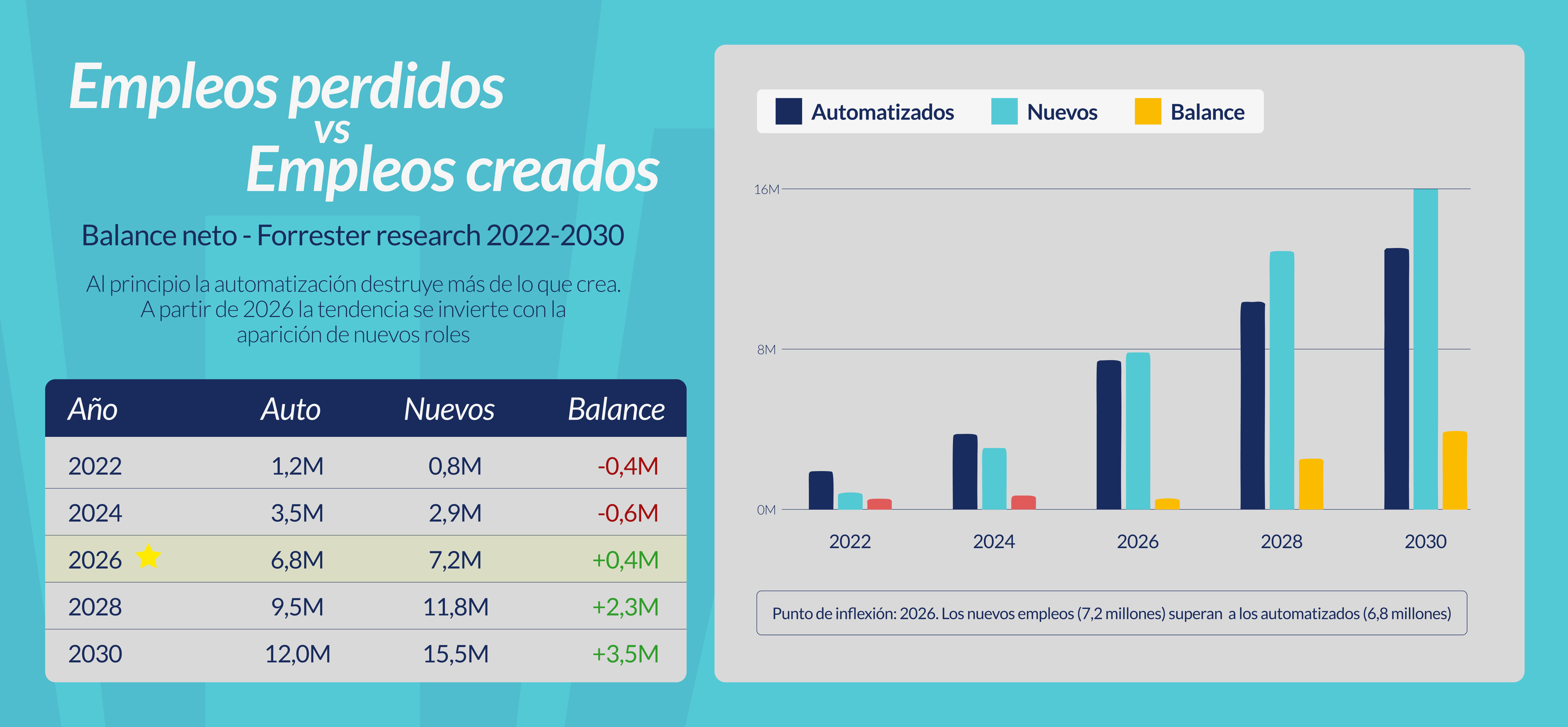 Es normal que escuches ruido sobre empleos que reemplazará la IA, pero lo que vemos en el día a día es una metamorfosis profunda de los roles. No es que los trabajos desaparezcan, es que las tareas que los componen están cambiando para enfocarse más en la supervisión. Nuevas oportunidades que requieren una visión mucho más global y una capacidad de adaptación constante.
