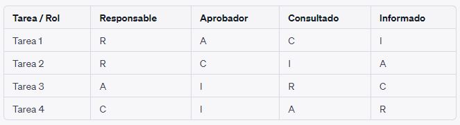 Informado (Informed): Las personas o grupos que deben ser informados sobre el progreso, los resultados o las decisiones relacionadas con la tarea. Aunque no tienen un rol activo en la ejecución o toma de decisiones, deben estar al tanto de lo que está sucediendo.